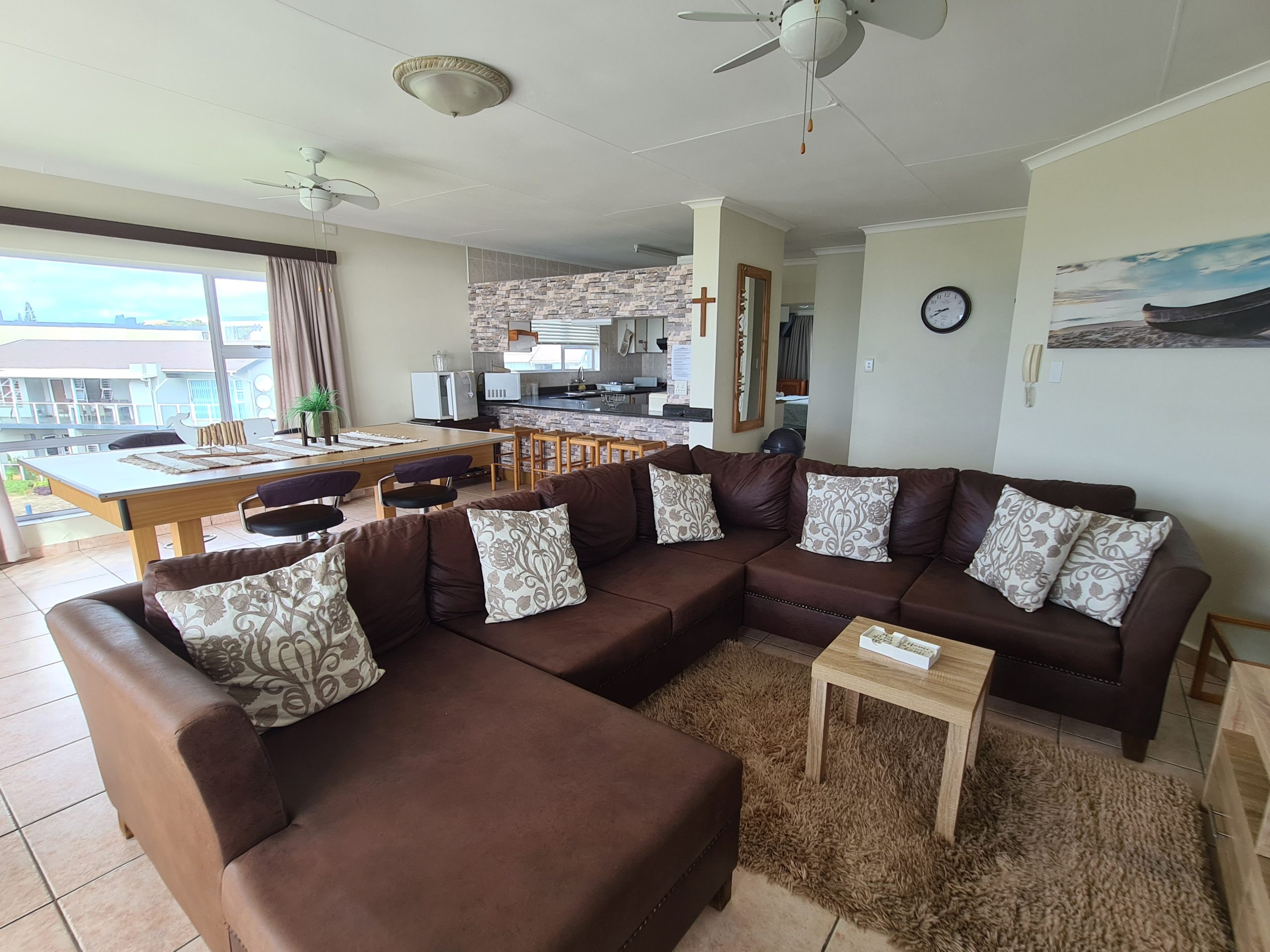 Uvongo Chalet 23 is situated in a security complex on the beachfront in Uvongo. This apartment is a cosy self-catering apartment for 8 people.